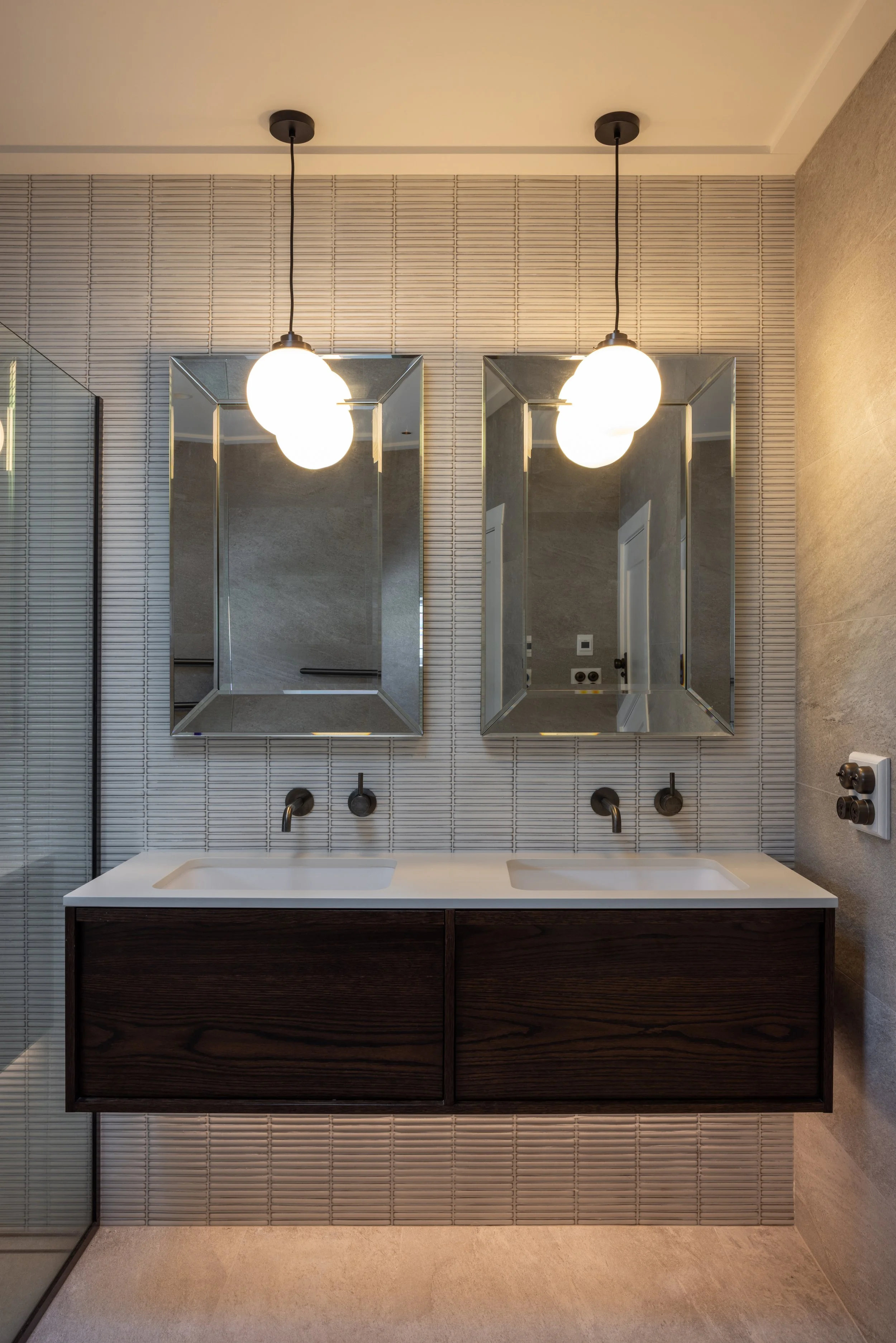 Chroma Interiors led the redesign of the kitchen, bathrooms, and laundry, carefully considering both function and flow. Influenced by the Asian elements inherent in the Arts and Crafts movement, the new spaces embrace a Japandi aesthetic—characterised by strong horizontal lines, rich walnut joinery, and an open, harmonious feel.
